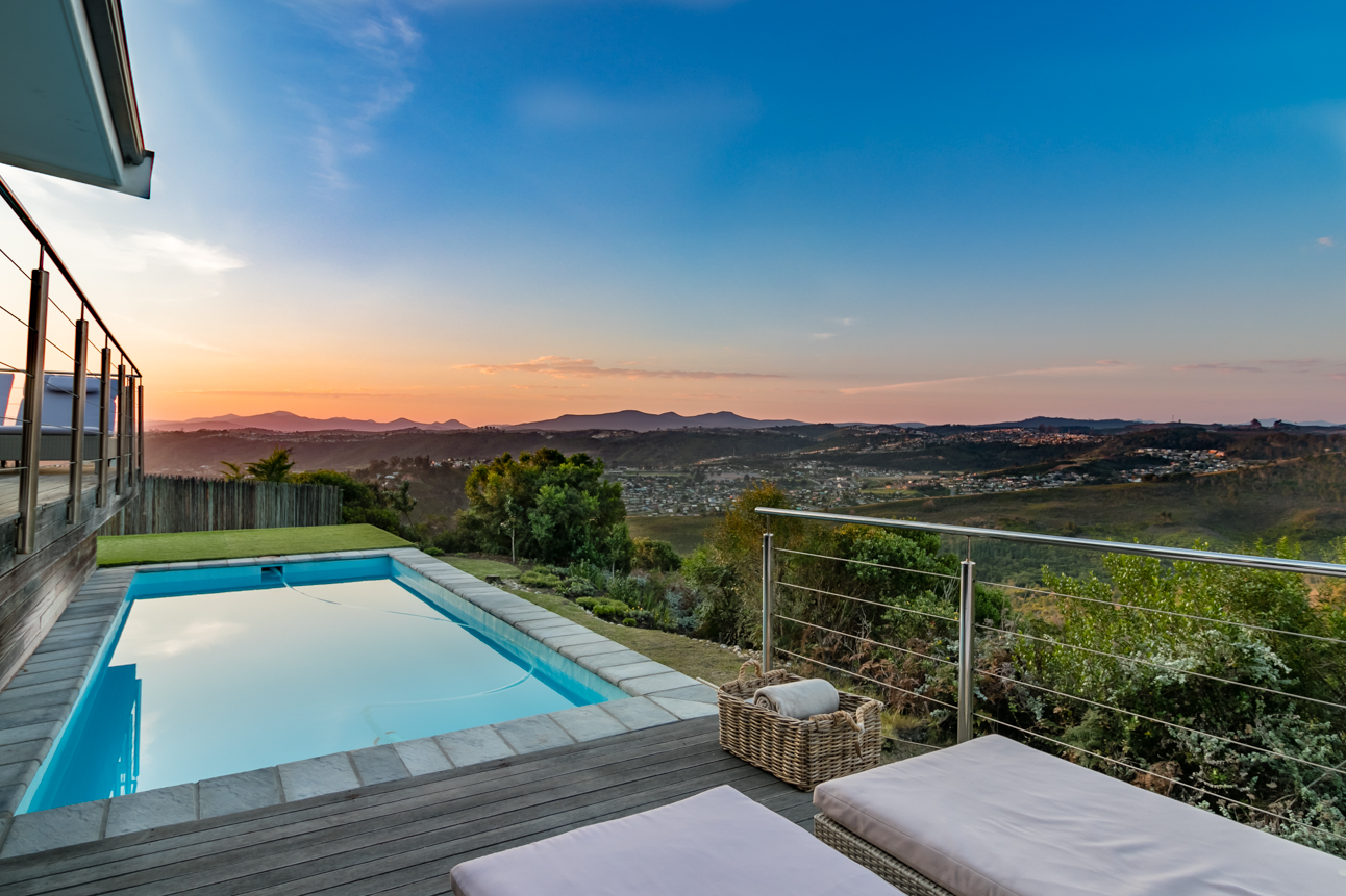 Direkt in einer wunderschönen Golfanlage, die zu den 10 besten Golfplätzen Afrikas gehört, liegt unsere wunderschöne, in die Hanglage perfekt integrierte Villa „House of the rising Sun“. Der Ausblick von unserer Poolterrasse über den unter Naturschutz stehenden Fanbush ist überwältigend. Unser Haus ist mit vier Schlafzimmern (alle mit eigenem Badezimmer ausgestattet), offenem Gaskamin, beheiztem Pool, 2 Griller, überdachtem Gartentisch mit Außenheizung, Satelliten-TV, Garage u.v.m. ausgestattet.
